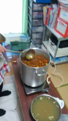 八幡山幼稚園では、間もなくカレーパーティーが始まります。年長組さんが、掘ったジャガイモと年長組さんが、買い出しに行って切ってくれた野菜の入ったカレーです。