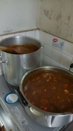 主事さんが大鍋で、調理してくれました。カレーのいい匂いが、幼稚園中にしています。早く食べたいな!