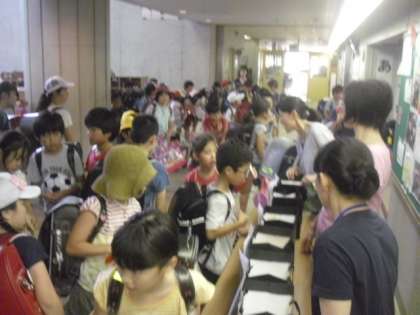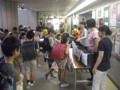 7月21日(土)に行われる学校運営委員会主催のチャレンジ☆スクールで、費用のかかる講座の集金が行われました。今日と明日の2日間で行いますが、今朝もたくさんの子どもたちが、昇降口に並んでくれました。集金が必要な講座だけですが、明朝も行いますので、申し込みをされたご家庭はご確認いただきたいと思います。