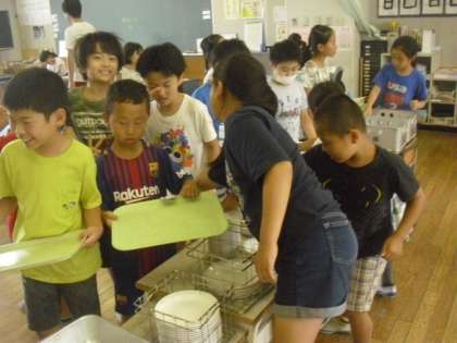 この暑さで、子どもたちの食欲が少し落ちていたようですが、今日はしっかり食べられました。3・4年生の教室をのぞくと、軒並み食缶は空っぽになっていました。もりもり食べて、暑さに負けない体力をつけましょうね。
