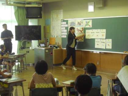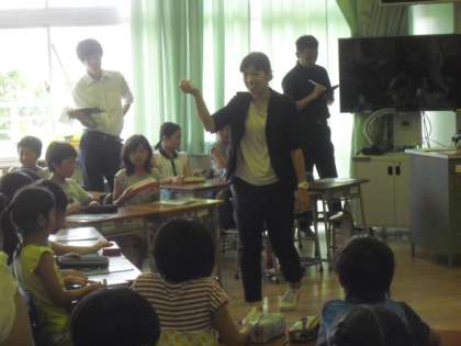 今年度第1回目の校内研究授業が、4年3組で行われました。研究主題『すすんで英語に親しみ、楽しんで活動する児童の育成』をテーマに、今年度から英語活動で研究を進めています。この1年間で各学年で計6回の研究授業を行っていきます。今日は、“I like Monday.”「すきな曜日は何かな?」の単元で、兼近主任教諭が、歌やチャンツなどを盛り込んだ、楽しい学習活動を展開しました。