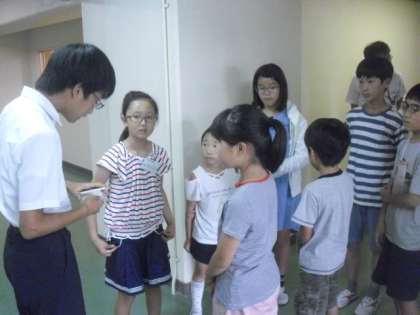 後半は、生徒会の中学生の引率で、校内を案内していただきました。各施設を回り、部活動の様子などを参観しました。