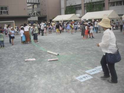 みどりの学び舎の緑丘中学校のPTAの方々も、楽しい催し物を企画していました。ジャンボひも選びや輪投げも大人気でした。緑丘中学校のボランティアの生徒も活躍していました。