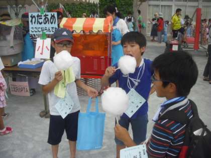 その他にも、的当てコーナーやお遊びコーナー、わたあめも人気でした。子どもたちは、おいしそうに頬ばっていました。