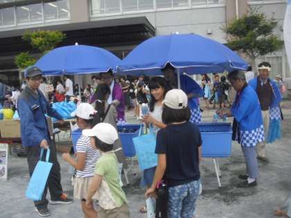 烏山地域の人気キャラクター「からぴょん」も登場し、イベントを盛り上げてくれました。上北沢小の子どもたちと八幡山小の子どもたちが祭りを通して交流し、楽しい夏の午後のひとときになっていました。