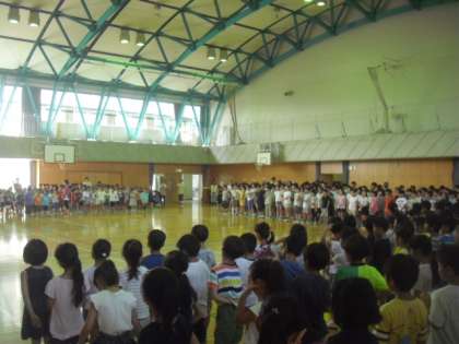 7月の音楽朝会は、「互いの音を聞き合おう」をめあてに、『ほしぞらはいつも』を、6年生のリコーダーを交えて合唱しました。久しぶりに全校そろっての合唱でしたが、暑い中、みんな背筋を伸ばして歌っていました。6年生のリコーダーの音色も素敵でした。