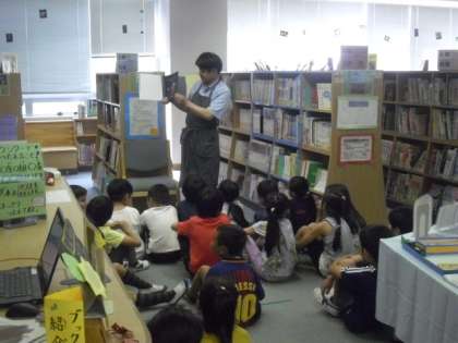2組は、図書室での読書の時間です。今日も図書館司書の先生に読みきかせをしてもらいました。身を乗り出して、読み聞かせが始まるのを待っている子どもたち。本当に本が大好きなのですね。この夏休みも、たくさんの本と出会ってほしいと思います。
