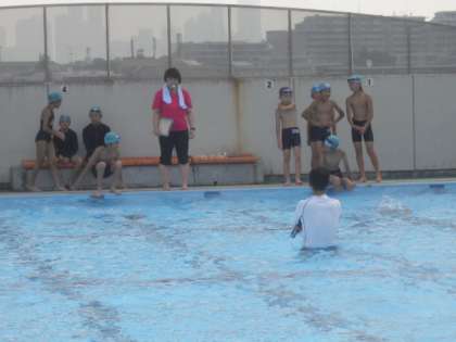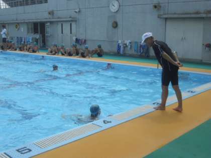 1学期最後の水泳指導。1・2時間目は、5年生が検定試験を実施しました。さすが5年生ともなると、長い距離を泳げる子もいて、25mを往復してがんばっていました。さらに夏休みのプールでも練習に励み、目標の泳力を達成させてください。