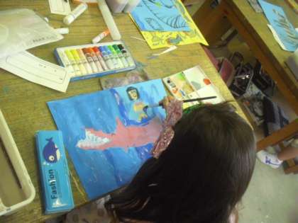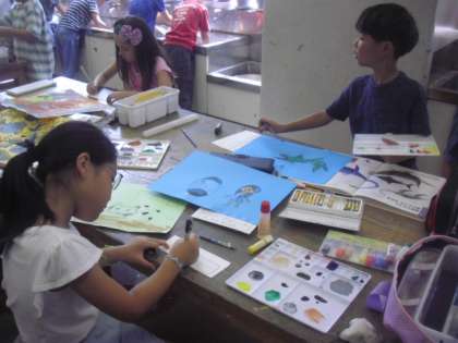 3組では、1学期の最後の図工の授業がありました。作品のまとめをしながら、描いた作品にタイトルをつけていました。どの子も素敵な動物の絵が仕上がっていました。2学期の展覧会に向けても、いい作品をたくさん作っていきましょうね。