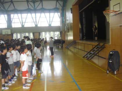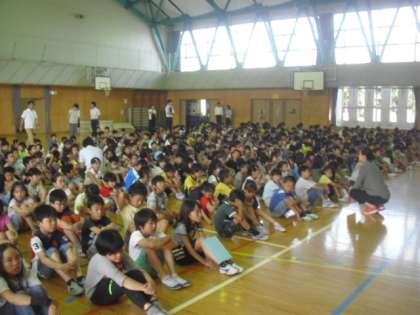 本日、1学期の終業式を迎えることができました。暑い中、子どもたちは、いつものように時間を守ってきちんと整列できました。校長先生からは、この1学期の生活をしっかりふり返り、44日間ある夏休みを充実して過ごすようにとの話がありました。