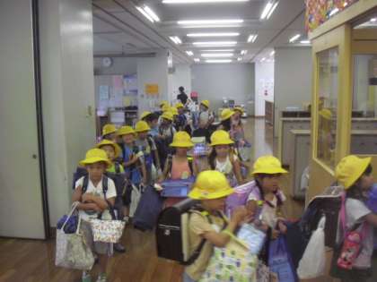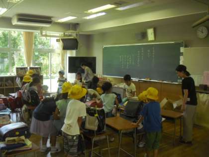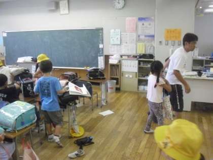 1年生も4時間の授業を終えて、帰りの支度をします。今日も荷物がいっぱいになっていましたが、明日から夏休みということもあって、とても元気です。忘れ物がないように、しっかり確認してくださいね。