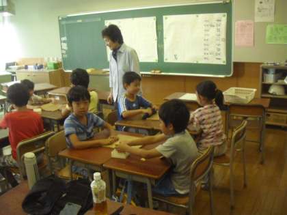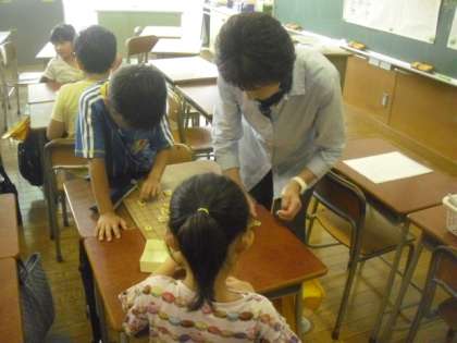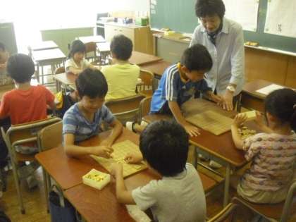 算数教室を使っての講座は、地域の方を講師に迎えての初級将棋講座です。初めての子にも分かりやすく教えていただきました。