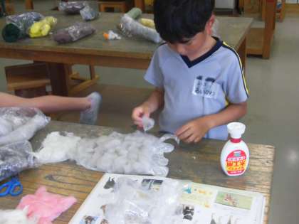 それぞれの子どもたちの「ふわふわニャンコ」が、でき上がってきました。