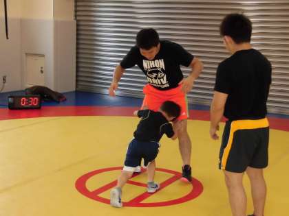 伝統ある日本大学レスリングの選手の方々に、マンツーマン以上でレッスンを受けられて、子どもたちも大満足でした。貴重な体験になりました。