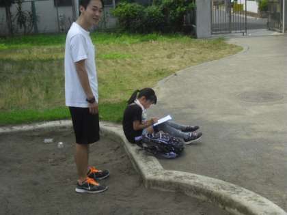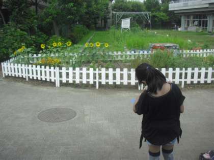 3年生が、ヒマワリの観察で来校していました。連日の猛暑で、夏に元気なヒマワリも、少し下向き加減な様子でしたが、しっかり観察し、記録していました。暑い中、ご苦労様です。また、観察しに来てくださいね。