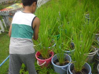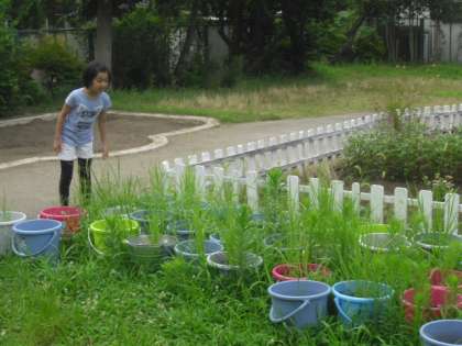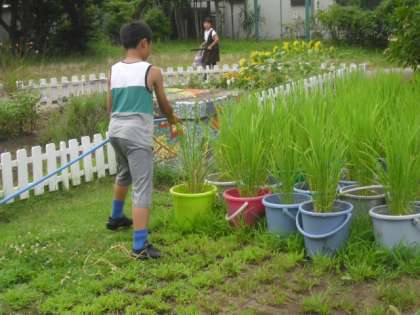 7月25日(水)5年生 バケツ稲の水やり