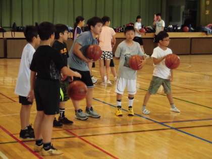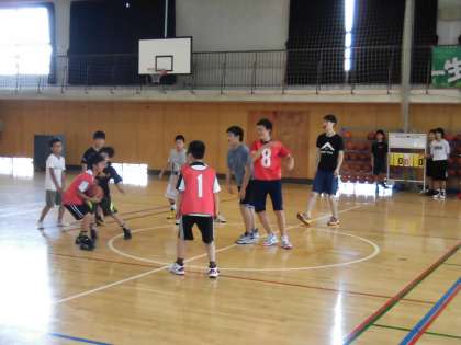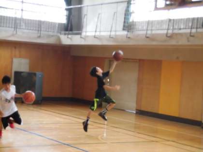 今日はバスケットボール部と陸上部の体験に参加しました。体育館でのバスケットボール部は、中学生から指導を受けながら、先輩の運動能力の高さに驚いていました。最後はミニゲームも行い、学び舎の他の小学校の子たちとの交流も図りました。