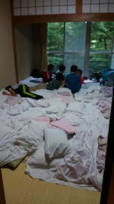 入浴を済ませて、家族に送る葉書の記入や、カードゲームで楽しんでいました。