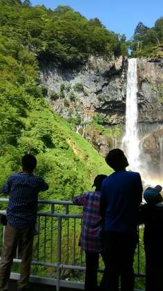100メートルをエレベーターで下り、下から華厳滝を眺めました。子どもたちは「過ごかったです。虹が見えました。」と滝の迫力に感激していました。