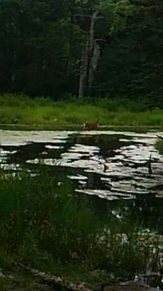 野生の鹿が、目の前の水辺で過ごしていました。鹿を見ながらのランチとなりました。運のいい子どもたちです。