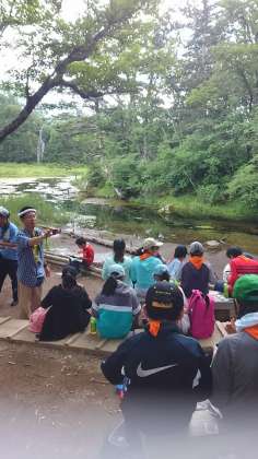 6年生の日光林間学園の2日目のハイキングは、泉門池で昼食でした。