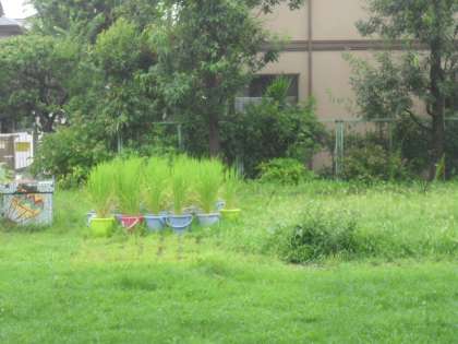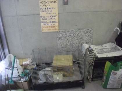 台風13号の接近に伴い、屋外にあるウサギ小屋から一時ウサギを、玄関先に避難させました。また、毎日お世話している飼育委員会の児童や、5年生でバケツ稲の当番で来校する児童は、台風が接近するこの2・3日の間、来校を控えてください。お世話や水やりついては、学校の職員が対応します。その他の用事で来校する際についても、十分に気をつけてください。