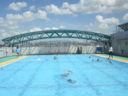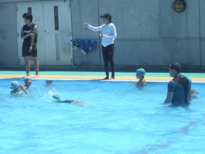 3回目の指導は、高学年です。昼近くになり、太陽の日差しがまぶしくなってきましたが、5・6年生は元気に泳いでいました。10名程度の参加でしたので、広いプールがほぼ貸し切り状態でした。明日は、もう少したくさんの参加を期待しています。