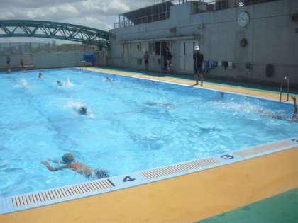 2回目は、高学年の指導が行われました。明日の検定に向けて、とにかく練習あるのみです。25mのコースを往復して、自分の泳ぎに磨きをかけていました。