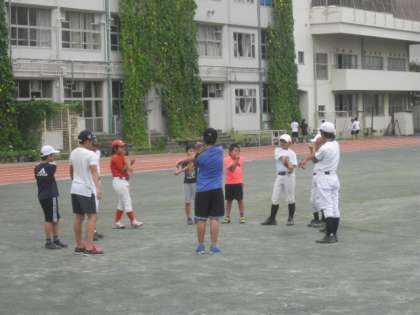 今日は、野球部の体験が行われました。先輩の中学生から指導を受けながら、キャッチボールやバッティング練習を行い、中学生の運動能力の高さに感心していました。また明日も八幡山小の子どもたちは、他の部活動の体験に参加しますので、よろしくお願いします。