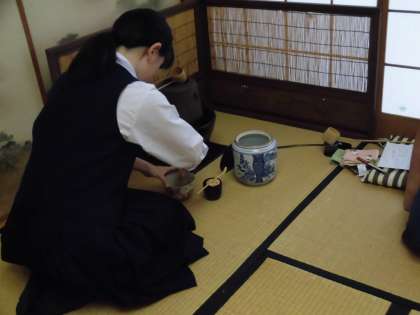 午後は茶道部に参加する児童が、体験入部しました。お茶の作法の基本から学び、先輩のたてたお茶をいただきました。よいお手前だったようで、とても満足そうでした。