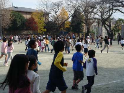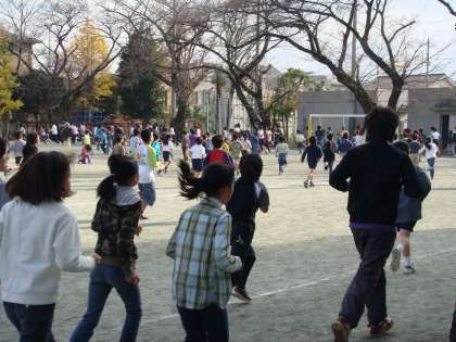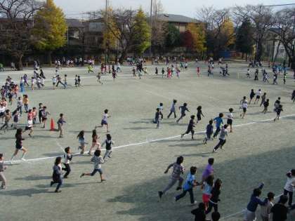 八幡山小学校冬恒例の「ランランランニング」が始まっています。20分休みに子どもたちと先生たちが走っています。