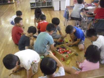 雨のため、今日も残念ながら、休み時間は室内で過ごすことになりました。2年生は、オープンスペースで、昔遊びの道具を出して遊びました。コマやだるま落としなど、友達同士で教え合いながら上手に過ごしていました。図書室もいろいろな学年が押し寄せて、大混雑でした。早くお天気がよくなって、校庭で元気よく遊びたいですね。