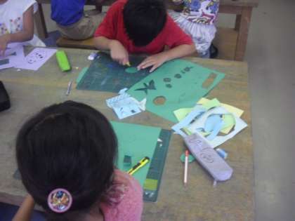 専科の授業も始まりました。今日の3・4時間目は、2年2組が図工室で課題に取り組みました。みんな夢中になって、カッターを使った立体的な図案を作成していました。しっかりカッターの使い方にも慣れて、展覧会の作品づくりに挑戦していってほしいです。