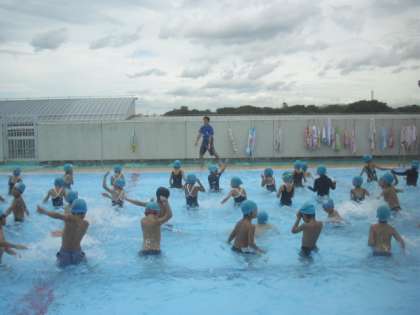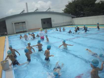 水慣れの後、検定を行いました。最後に合格できた子は大喜びでバッチを交換していました。残りの時間は、みんなの大好きな「宝探し」と「鬼ごっこ」をしました。大盛り上がりで、今年最後のプールの時間を終えることができました。