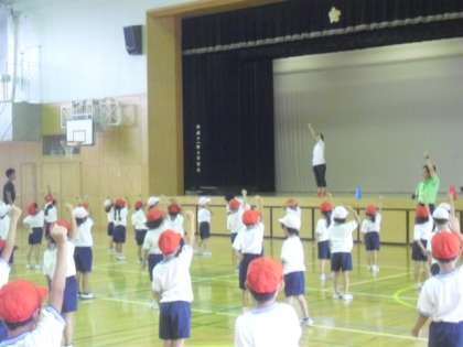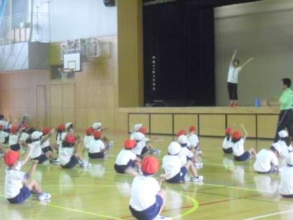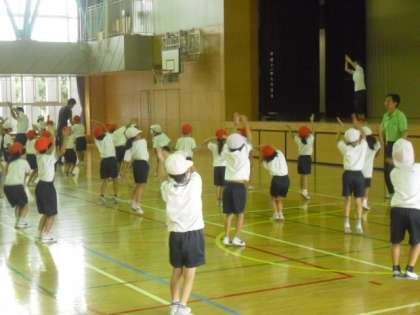 4校時は、1年生が体育館での表現ダンスの練習を行いました。小学校で初めての運動会となる1年生。先生のお手本を真剣に見てまねて、やる気に満ちあふれていました。