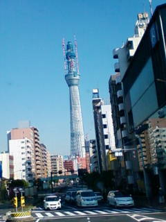 駒形の交差点から見たスカイツリー。実際に見るとさすがに大きいです。