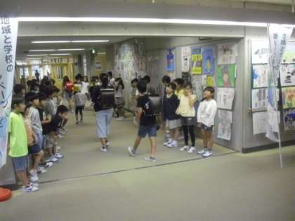 今朝は雨の登校になったので、2年生のあいさつキャンペーンは、1階の昇降口のところで行われました。廊下の両側にずらっと並び、入室する子たちを出迎えます。中央階段の2階まで花道ができて、校内は子どもたちの元気なあいさつの声が響き渡っていました。