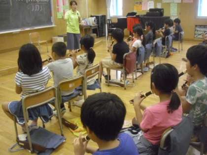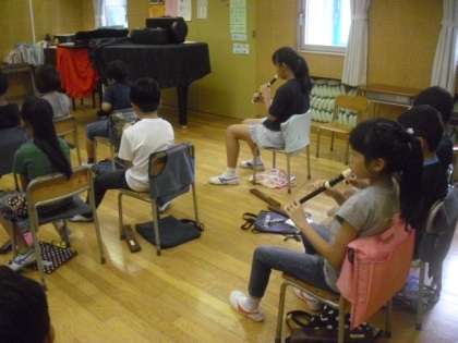 2組の3時間目は音楽の授業。音楽室でリコーダーの学習をしました。自分の音色をよく聞きながら、みんなで美しいハーモニーになるように繰り返し練習します。運指に気をつけながら、子どもたちは集中して取り組んでいました。