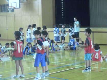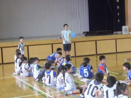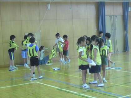 給食準備中の体育館では、低学年リレーの代表が集まって、第1回目の練習が行われました。今日はチームごとに選手が顔合わせをして、ゼッケンの色や番号の確認、走る順番の話し合いなどを行いました。これから本番に向けて、実際に走って練習を繰り返します。クラスの代表として、みんな少しずつ気持ちを高めていきましょうね。