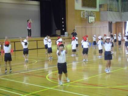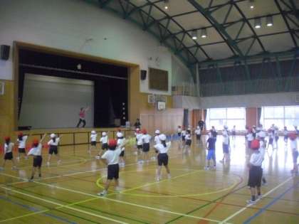 2時間目の体育館では、今日も1年生が運動会の表現ダンスの練習に取り組んでいました。お家でも練習しているようで、メキメキと上達してきて、今日は踊りの隊形についても説明がありました。いよいよ来週からは、校庭での練習も始まります。