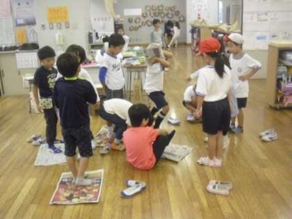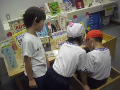 今日は朝から雨降りの1日になりました。休み時間は外で遊べないので、教室で静かにゲームをしたり、図書室で本を読んだりして過ごします。1年生も上手に、オープンスペースを使って仲良く遊んでいました。