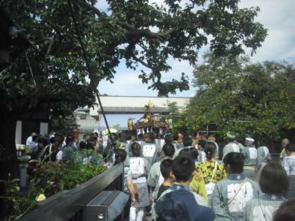 八幡山町会長のお宅で休憩をとり、いよいよ祭りは後半にさしかかります。八幡山駅の方面に向かいます。