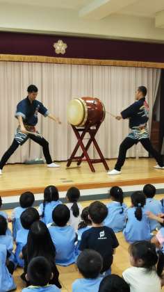 八幡山幼稚園では、オリパラ教育の伝統芸能体験が行われました。