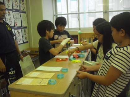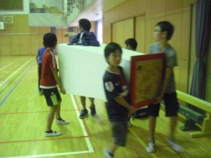 5、6年生は、6時間目に、2回目となる運動会の係児童の打合せがありました。雨のため校庭は使えず、すべて屋内での活動になりました。運動会の用具を出したり、係のリボンを作ったり、みんな一生懸命働いていました。