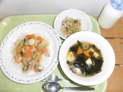 今日は中華料理の献立でした。ごはんに栄養たっぷりのあんをかける中華丼は、ごはんもあんも、よく食べてくれました。