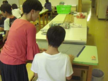 2組の家庭科は、先週に引き続き、エプロン作りです。展覧会に出品する作品なので、子どもたちも必死です。先生に個別に指導を受けたり、ミシンの使い方を友達と相談したりしながら、みんながんばっていました。