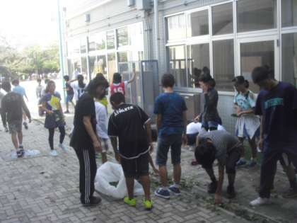 校庭だけでなく、ピロティや正門前もすっきりきれいにします。気持ちよく運動会を迎えるために、どの学年の子どもたちも一生懸命に働いてくれました。お疲れ様でした。