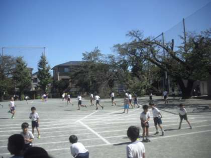 気持ちよい青空が広がり、中休みの校庭は今日も賑やかでした。一方で、運動会の練習に励む姿も見られました。全校ダンスの担当児童が、1年生に「八幡山音頭」の指導を行いました。初めて踊る踊りですので、1年生も必死でしたが、最後にしっかりお礼もして、また明日もよろしくお願いします。