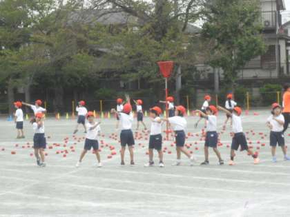 1年生は3時間目に、運動会のリハーサルをしました。ダンスの隊形の最終確認と、団体競技の玉入れを行いました。玉入れの『エビカニクス』もしっかり踊れて、本番に向けて準備は整ったようです。