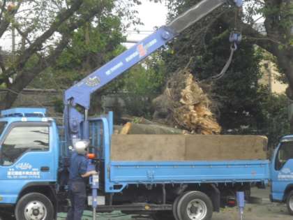 台風で倒れてしまった桜の木が撤去されました。植木屋さんにお願いして、一部木材を残してもらいました。長年八幡山小学校を見守ってくれた桜の木に感謝です。